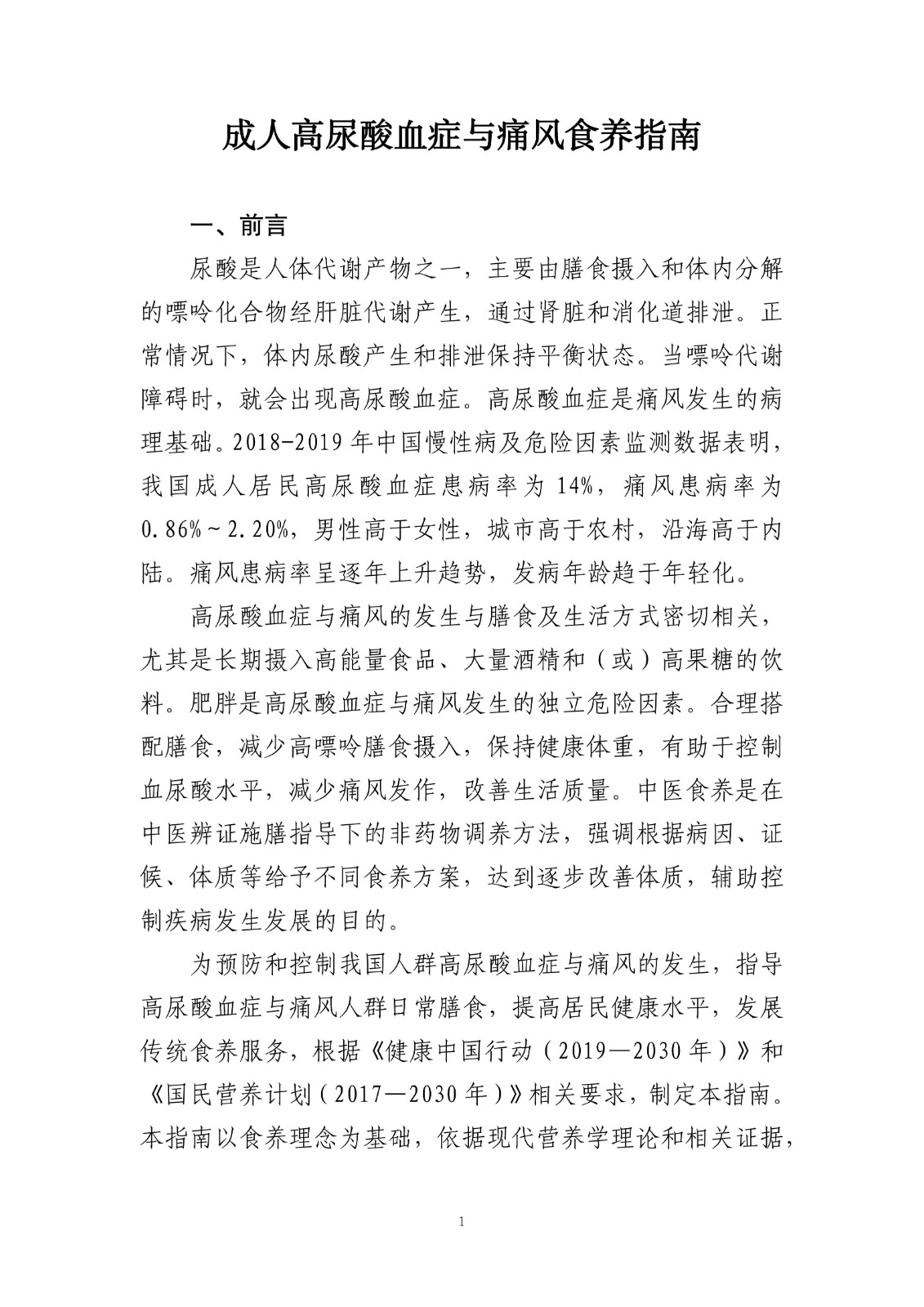 国家卫生健康委:成人高尿酸血症与痛风食养指南(2024 年版)